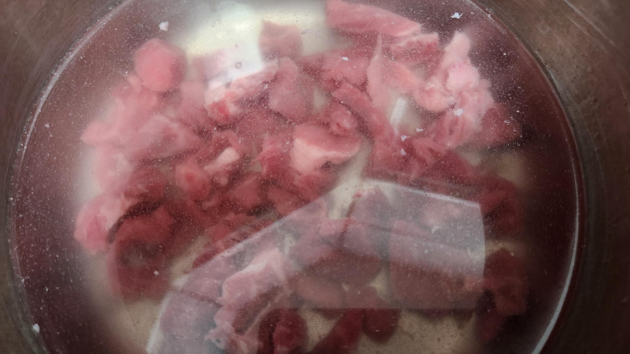 핏물뺀 소고기는 참기름 넣어서 볶다가 익으면 쌀뜨물을 넣어서 끓여요.